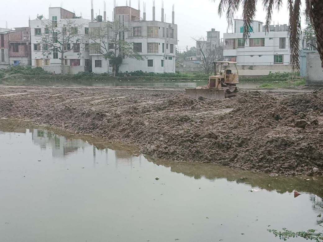 যশোরে পুকুর ভরাট করে বহুতল ভবন