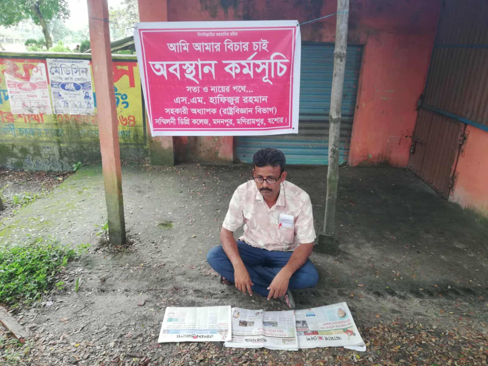 নিজের বিচারের দাবিতে কলেজ শিক্ষকের অবস্থান কর্মসূচি