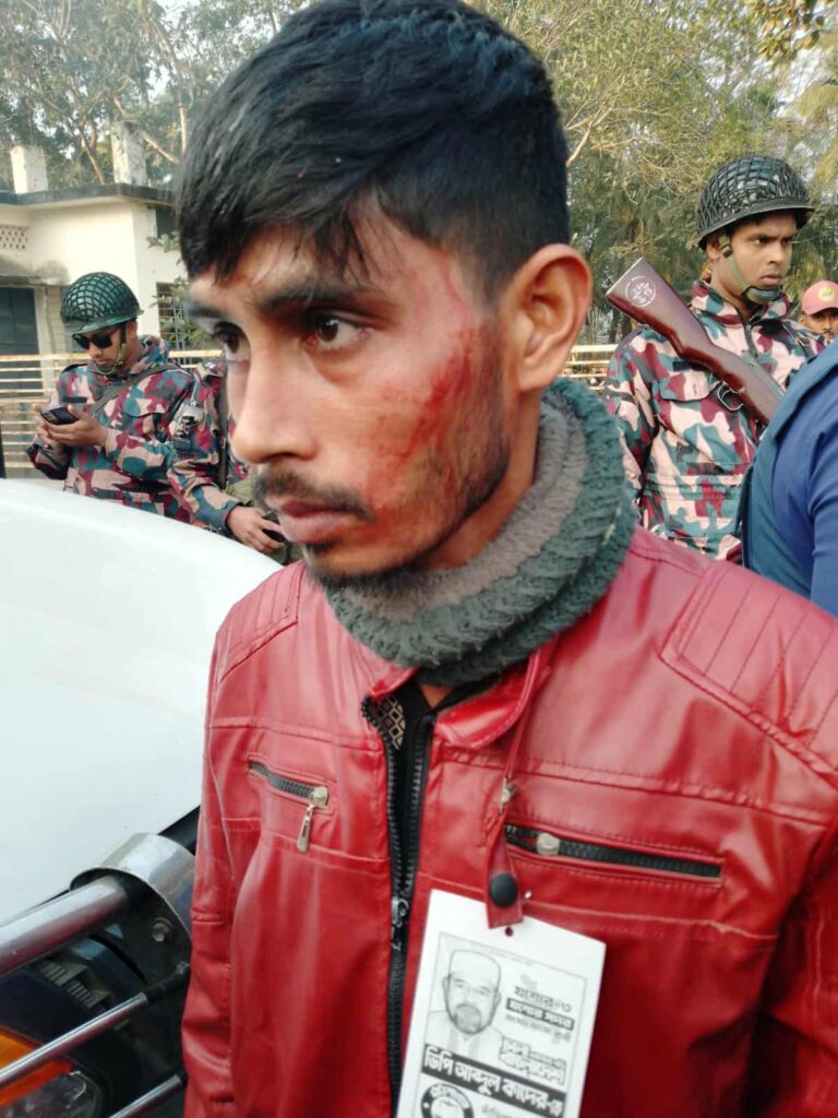 আহত আবু হোসেন জানান, বৃহস্পতিবার সকালে তিনি ভোটকেন্দ্রের সামনে দাঁড়িয়ে ছিলেন। এ সময় বিএনপির সমর্থকরা তার ওপর হামলা চালিয়ে পিটিয়ে জখম করেন। স্থানীয়রা তাকে উদ্ধার করেন। একই সময়ে আব্দুল গণি ভোট দিতে বাড়ি থেকে বের হলে প্রতিপক্ষের লোকজন তাকে চড়-থাপ্পড় মেরে বাড়িতে পাঠিয়ে দেয় বলে অভিযোগ পাওয়া গেছে। ঘটনার খবর পেয়ে সেনাবাহিনী ও বিজিবির সদস্যরা দ্রুত ঘটনাস্থলে পৌঁছে পরিস্থিতি নিয়ন্ত্রণে আনেন। আইনশৃঙ্খলা বাহিনীর উপস্থিতি টের পেয়ে অভিযুক্তরা সেখান থেকে পালিয়ে যায় বলে জানা গেছে।