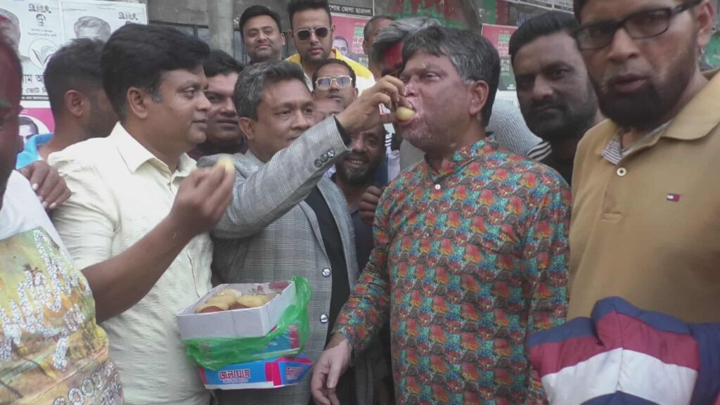যশোরে আনন্দ মিছিল মিষ্টি বিতরণ