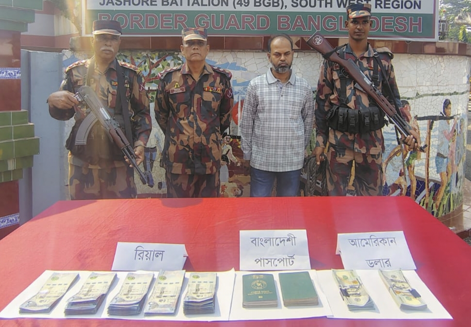 যশোরের বেনাপোলে ভারত থেকে বাংলাদেশে ডলার ও সৌদি রিয়াল পাচারের সময় প্রায় অর্ধ কোটি টাকার সমপরিমাণ বৈদেশিক মুদ্রাসহ এক যাত্রীকে