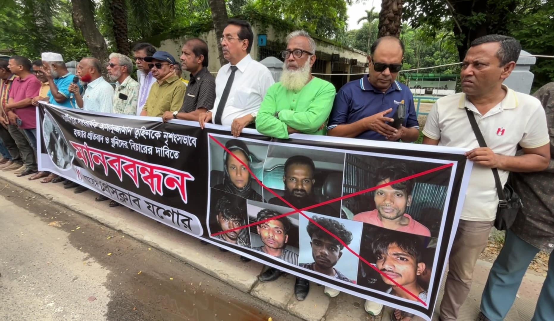 গাজীপুরে সাংবাদিক তুহিন হত্যার প্রতিবাদে যশোরে মানববন্ধন